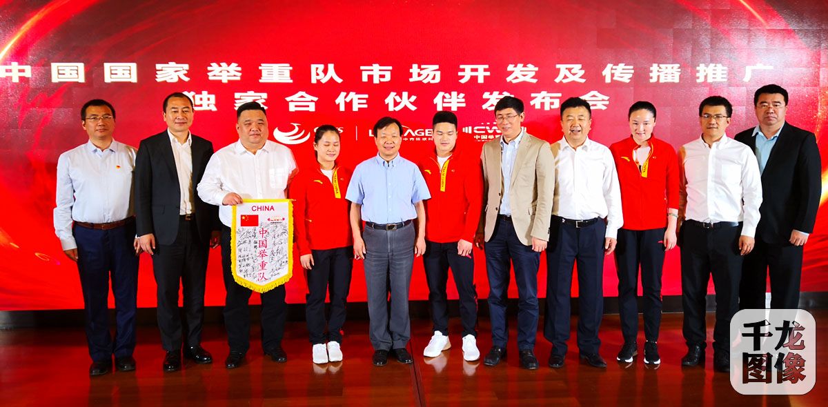 7月22日,中国国家举重队市场开发及传播推广独家合作伙伴发布会在京举行。中青旅联科正式成为国家举重队独家市场开发及传播推广的合作伙伴,将全面负责国家举重队团队及运动员的形象打造、品牌代言、商业开发、宣传推广等工作。图为签约仪式现场。千龙网记者 戚连民摄