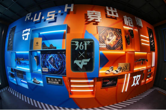 在盛典现场的361°产品展示区,以枪鞋“361°AK47-RUSH-星速”、“361°M4A1-RUSH-夜袭”为代表的6双联名鞋款全部亮相。其中,根据《穿越火线》经典武器AK47设计的“361°AK47-RUSH-星速”,呈现出鲜明的战术机能风,它采用多层结构大底设计,搭载361°QU!KFOAM科技可带来优秀的缓震回弹效果;而以M4A1为蓝本设计的“361°M4A1-RUSH-夜袭”,配色率性潇洒,中底SAC-AIR科技气舱加持造就了出色的缓震和灵敏的回弹,使其外观颇具未来感。两双设计独特又情怀满满,颜值与科技感并存的联名产品,牢牢吸引了观众眼球,大家纷纷驻足围观。