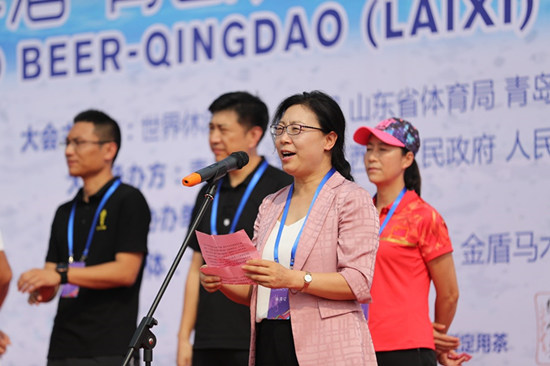 姜水清在致辞中表示,马是奋斗不止、自强不息的象征,是吃苦耐劳、勇往直前的代表,建设国家需要万马奔腾的气势,推动发展需要快马加鞭的劲头,开拓创新需要一马当先的勇气。她还在致辞中充分肯定了青岛(莱西)2019世界休闲体育大会执委会在前期筹备中扎根莱西、立足莱西、深入了解莱西的特点,让各项赛事活动独具莱西特色。
