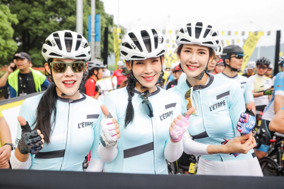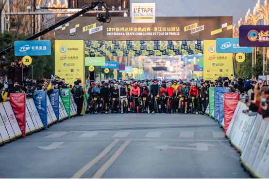 (图注:2019年环法挑战赛澄江抚仙湖站骑友与基特尔共同发车)