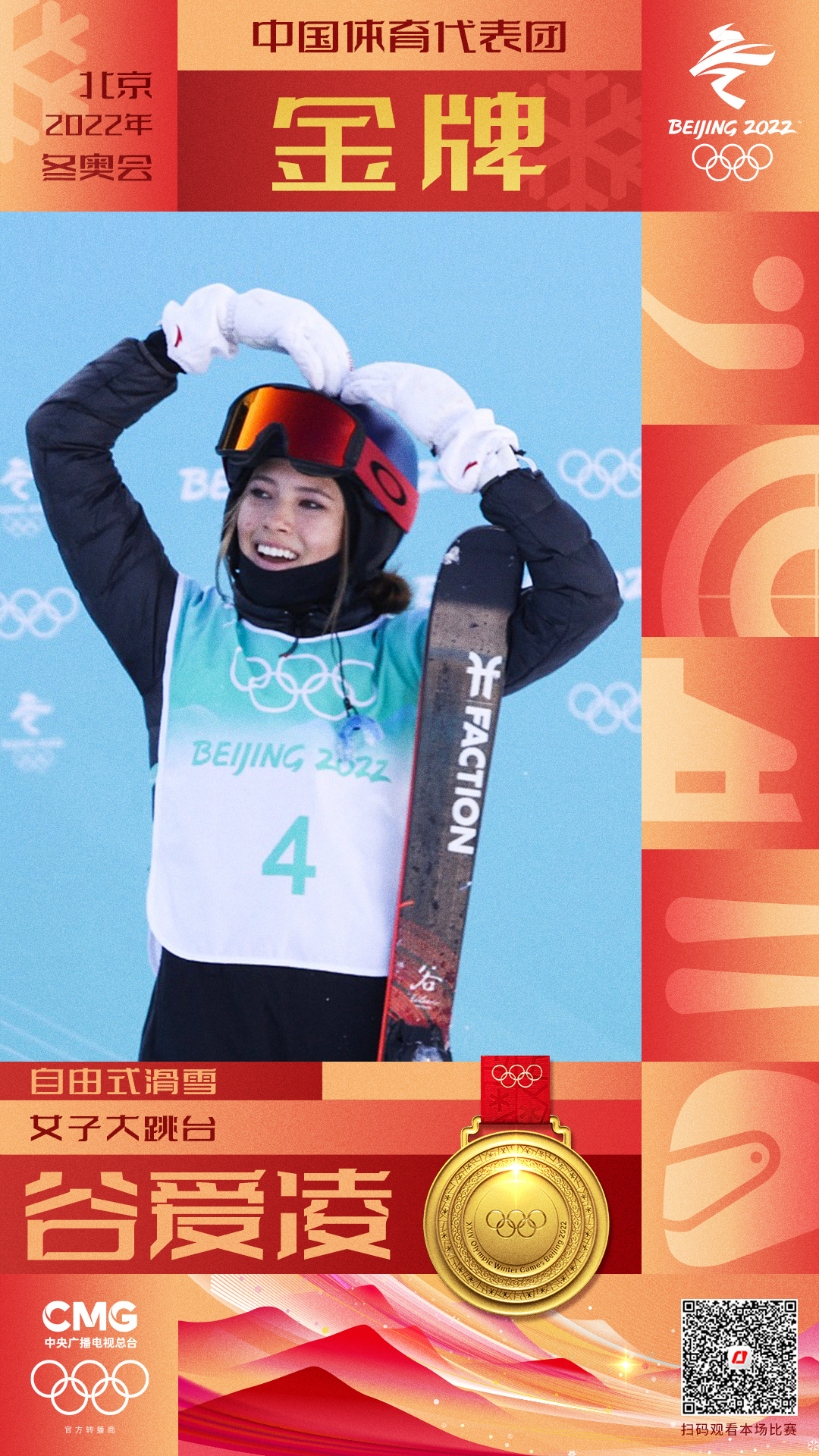 中国代表团第三金!谷爱凌夺得北京冬奥会自由式滑雪女子大跳台金牌!