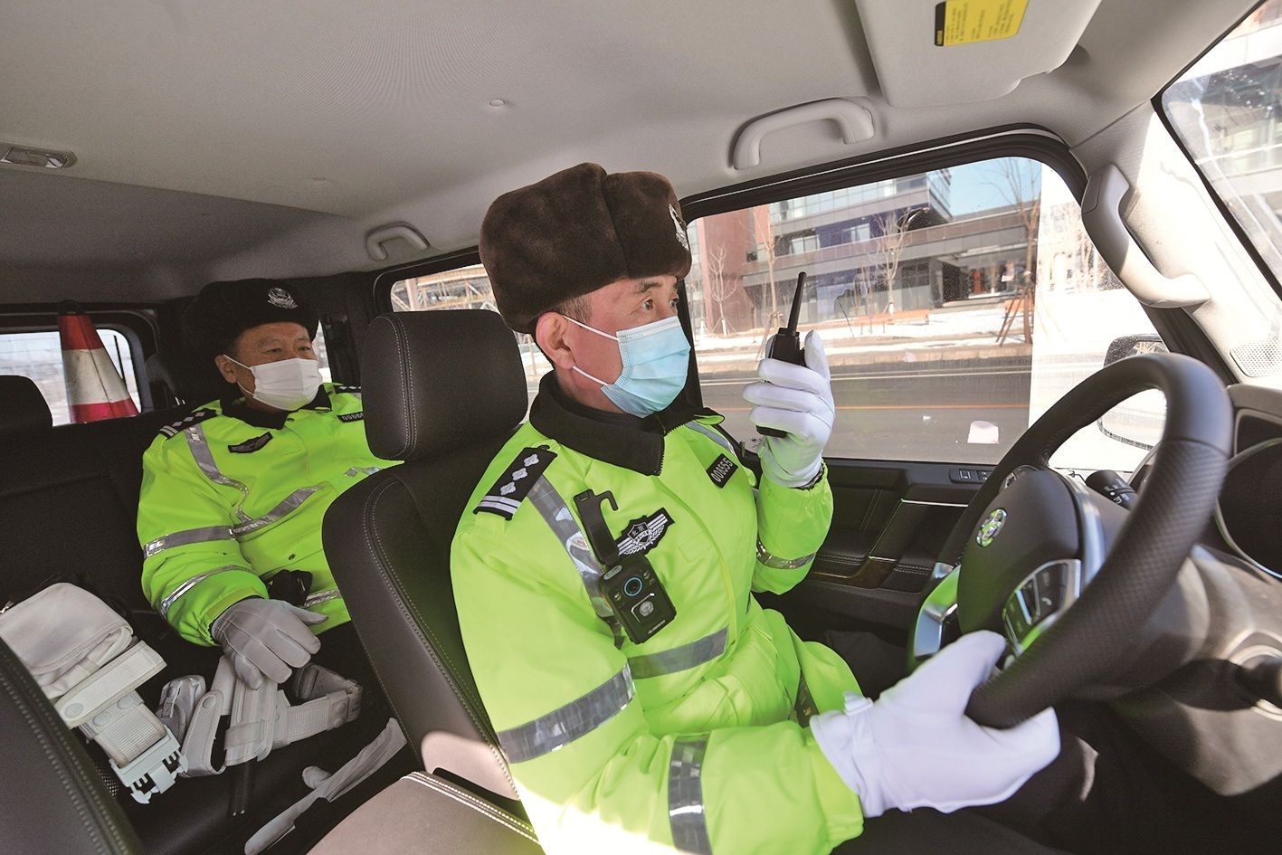首钢园区,应急处置小分队的交警在车内备勤,遇到突发情况,随时出动。新京报记者 王贵彬 摄