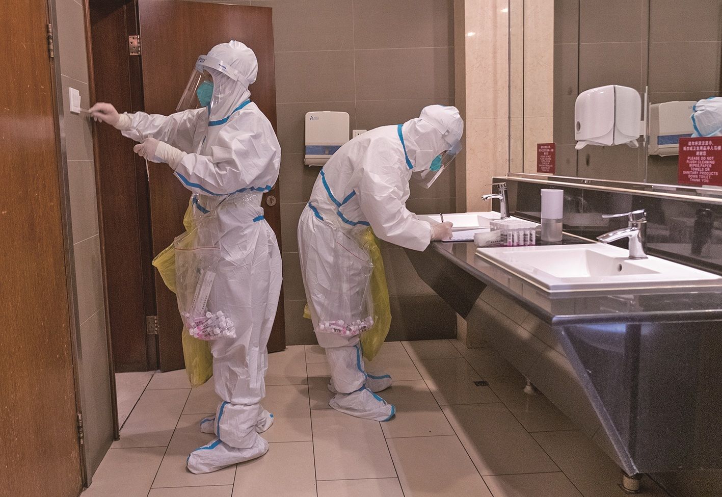 为冬奥会提供接待服务的西藏大厦,防疫工作人员每天对环境样本进行采集。新京报记者 陶冉 摄