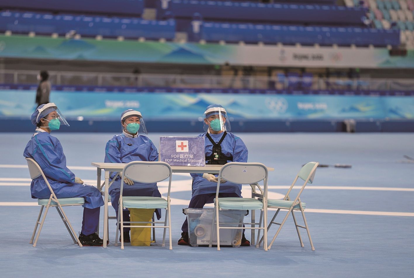 国家速滑馆,医疗团队在赛场中值守。新京报记者 陶冉 摄