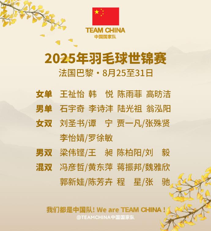 国羽一共有8位单打选手和9对双打组合共26人参加2025年巴黎世锦赛。