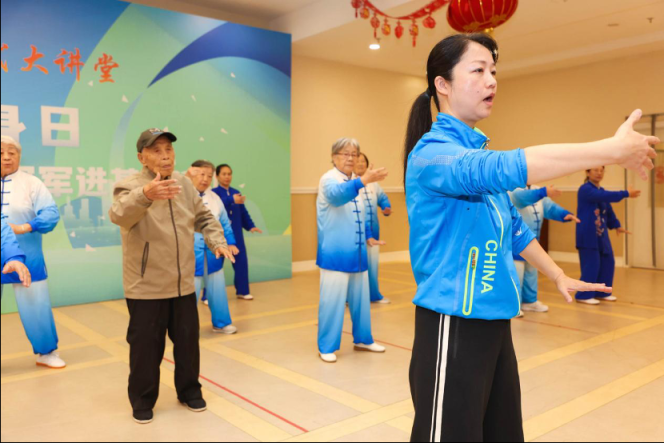 10月28日,中国宋庆龄基金会“冠军运动员基金”支持的首都关心下一代大讲堂“北京市奥运冠军、世界冠军进基层”活动走进北京和悦家国际颐养社区,开展了一场别开生面的太极拳公益活动。