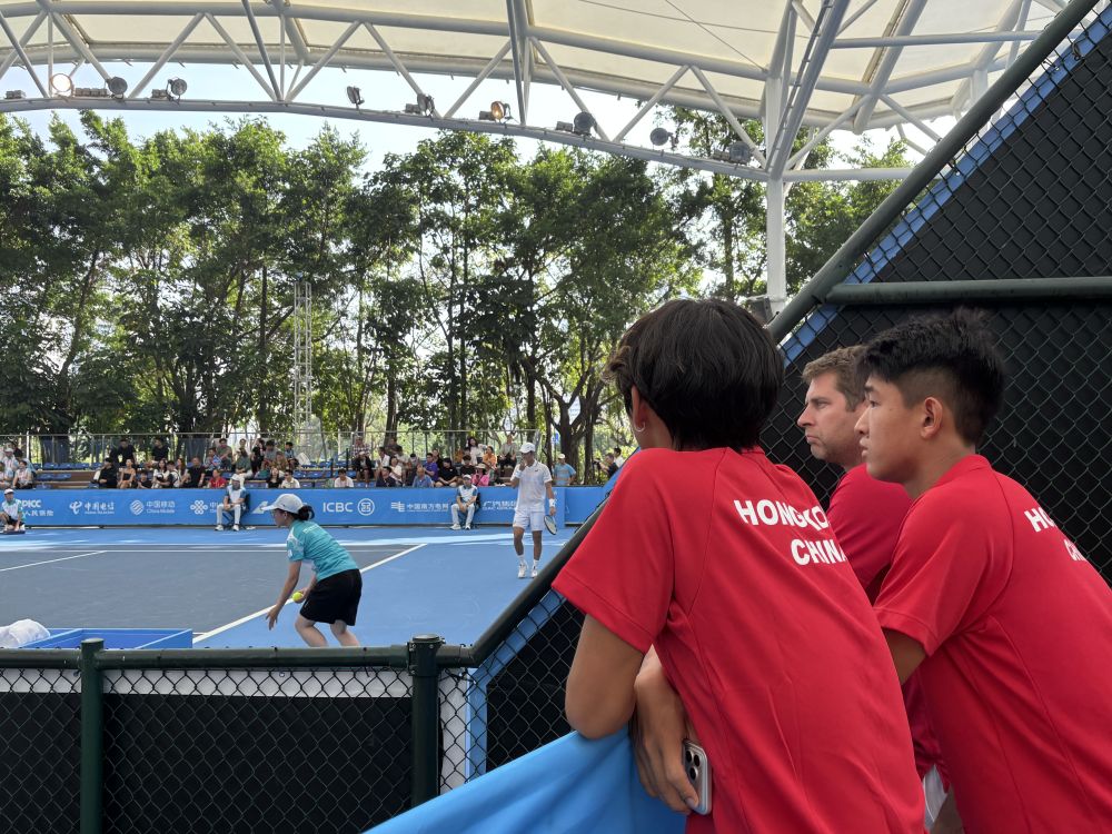11月9日,香港队选手在场外观看商竣程比赛。新华社记者 乐文婉 摄